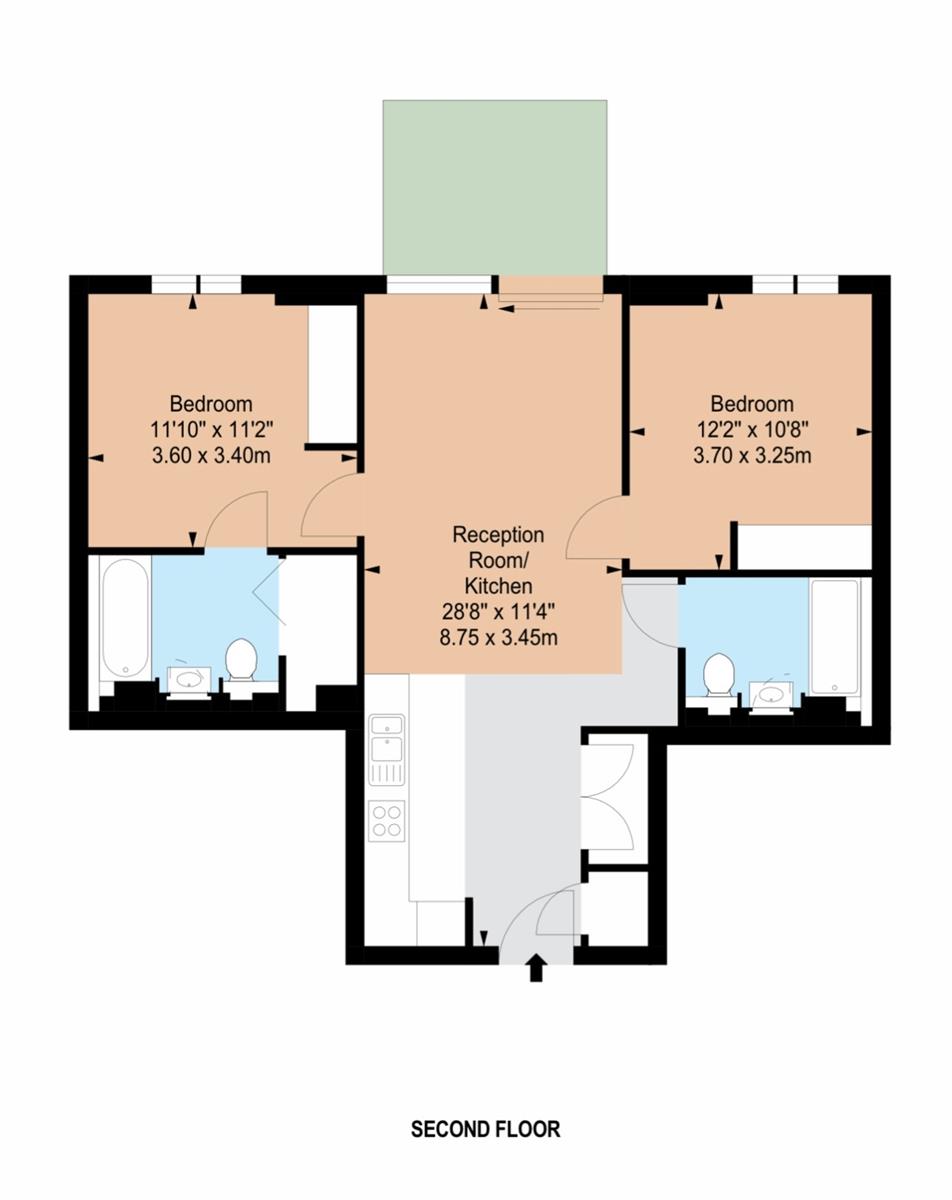 The apartment has two double bedrooms, one ensuite bathroom plus a family bathroom. The whole apartment also benefits from comfort cooling.
